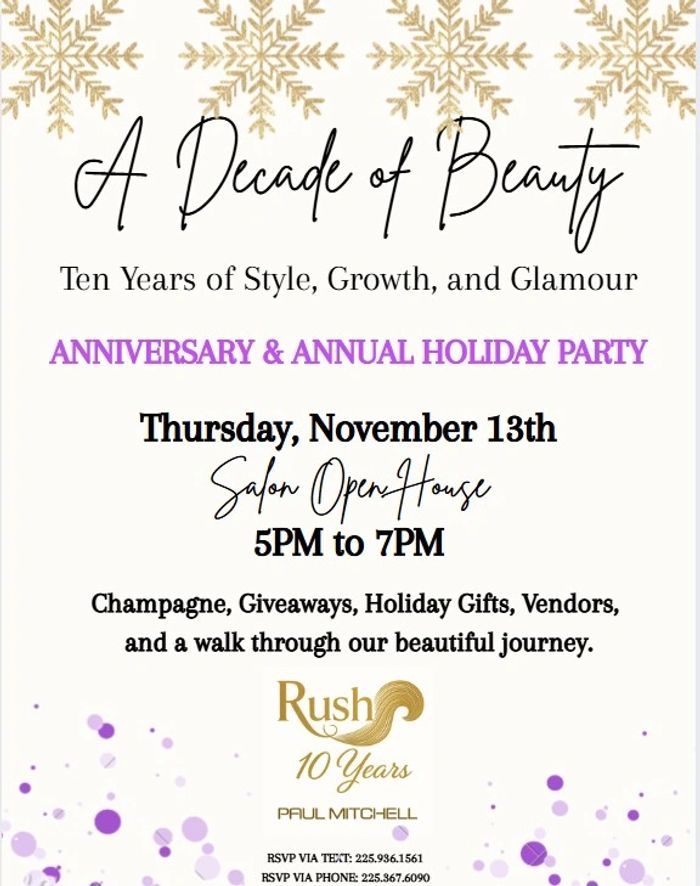 When Brittany was searching for the perfect name for the salon, her mother Brookie and sister Brenna said, “Rush — isn’t that exactly what we want to be?” Classy, stylish, loving, and undeniably sparkly. Just like MeMe. So, Rush it is. A tribute to our roots, our inspiration, and the kind of beauty that shines from the inside out.